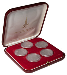 Набор платиновой олимпиады-80 5 монетт в слабах NGC pf 69