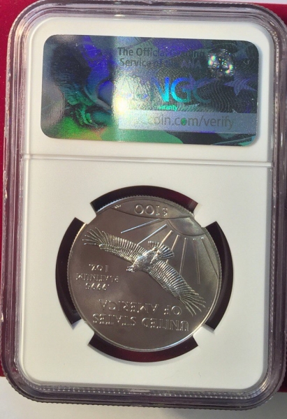 Платиновая монета 100 долларов "Американский Орел", 31.1 гр. Pt999, В СЛАБЕ NGC MS69