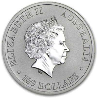 Реверс: портрет королевы Елизаветы II работы Яна Бродли и надписи: «ELIZABETH II • 100 DOLLARS • AUSTRALIA».