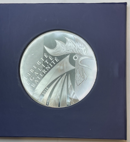 Серебряная монета 100 евро Петух, Франция, 2014 г.,общий вес 50 г., Ag 900
